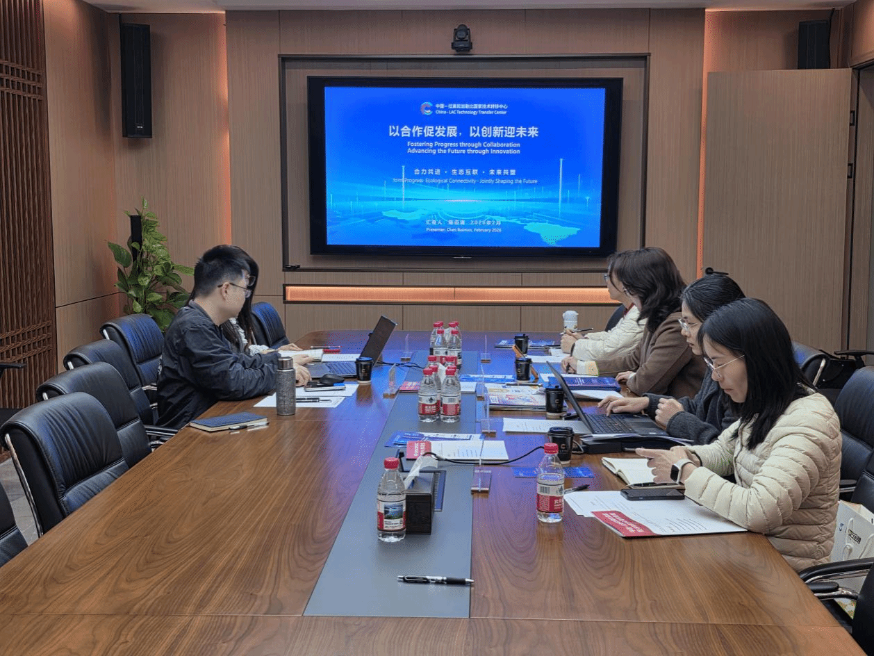 On the afternoon of February 9, an investigation team from the Journal Editorial Department of the Guangdong Science and Technology Cooperation Center visited the Latin America Research Institute of the CLTTC. Both sides engaged in in-depth and pragmatic discussions on topics including academic governance mechanisms, management of open research projects, and the development of science and technology platforms. The exchange provided intellectual support for sharing experiences and aligning ideas in cross-regional sci-tech innovation cooperation. Representatives attending the event included Su Lina, Head of the Journal Editorial Department of the Guangdong Science and Technology Cooperation Center, Yu Jianyi, Deputy Head of the Department, and Chen Baiman, Director of the China-LAC Technology Transfer Center (CLTTC).