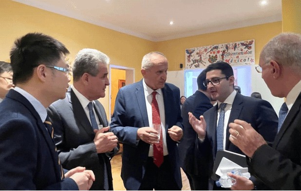 应墨西哥驻中国大使馆邀请,中拉中心筹建负责人陈佰满及相关团队成员参加墨西哥科学院院长、清华大学客座教授Jose A.Seade博士当选院长访华招待会。该活动由墨西哥驻中国大使馆举办,中国科学院、数学与系统科学研究院、北京数学科学与应用研究所、清华大学、北京科技大学、东莞理工学院、福建农林大学等学术机构和高校代表受邀参会。墨西哥驻华大使在招待会上表示,墨方需深化同中方的关系,加强两国之间的学术和科技合作,继续探索和支持两国之间的合作项目。中拉中心代表与墨西哥驻华大使、墨西哥科学院当选院长围绕科技交流、学术合作等方面进行交流,大使肯定了中心与墨西哥国立自治大学的合作,希望未来中拉中心能进一步推动中墨之间人文、学术、科技友好交流合作。