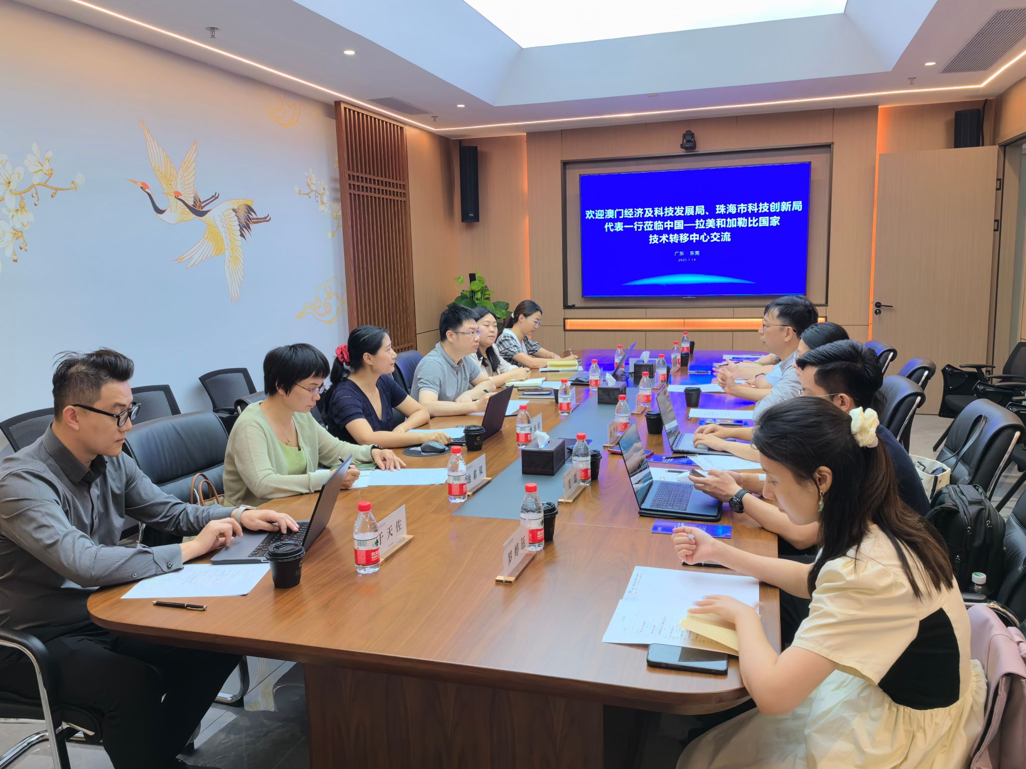 7月14日,澳门经济及科技发展局科技产业促进处处长李俊杰、珠海市科技创新局交流合作科副科长欧珺泽、横琴粤澳深度合作区中葡科技交流合作中心高级项目主管毛瑞、澳门青年创业孵化中心交流合作部经理及中心秘书潘慧妍、东莞理工学院法律与社会工作学院副院长罗兆婧、北京文华在线教育科技股份有限公司广东区域总经理池素双等代表赴中拉技术转移中心调研交流。中拉技术转移中心执行主任陈佰满、项目主管张樊景等代表出席活动。