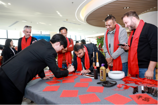 活动期间,外籍专家们参与了漆扇制作、书法福卡书写、年宵花福桶制作、拉美咖啡品鉴和拉花艺术、汉服体验等丰富传统文化活动,亲身感受到了中国春节的独特魅力与深厚的中国传统文化底蕴,沉浸式领略了中华服饰之美,共同迎接新一年的曙光。