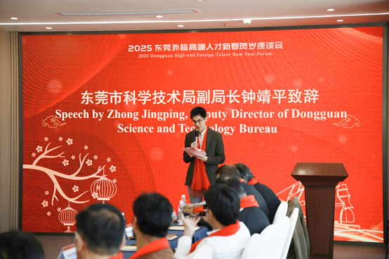 2025年1月3日,东莞市科学技术局在松山湖国际创新创业社区顺利举办了“2025东莞外籍高端人才新春贺岁座谈会”。此次活动为中外专家学者搭建了一个文化交融与智慧碰撞的平台,促进了专家学者间的合作与友谊,现场洋溢着浓厚的节日氛围。